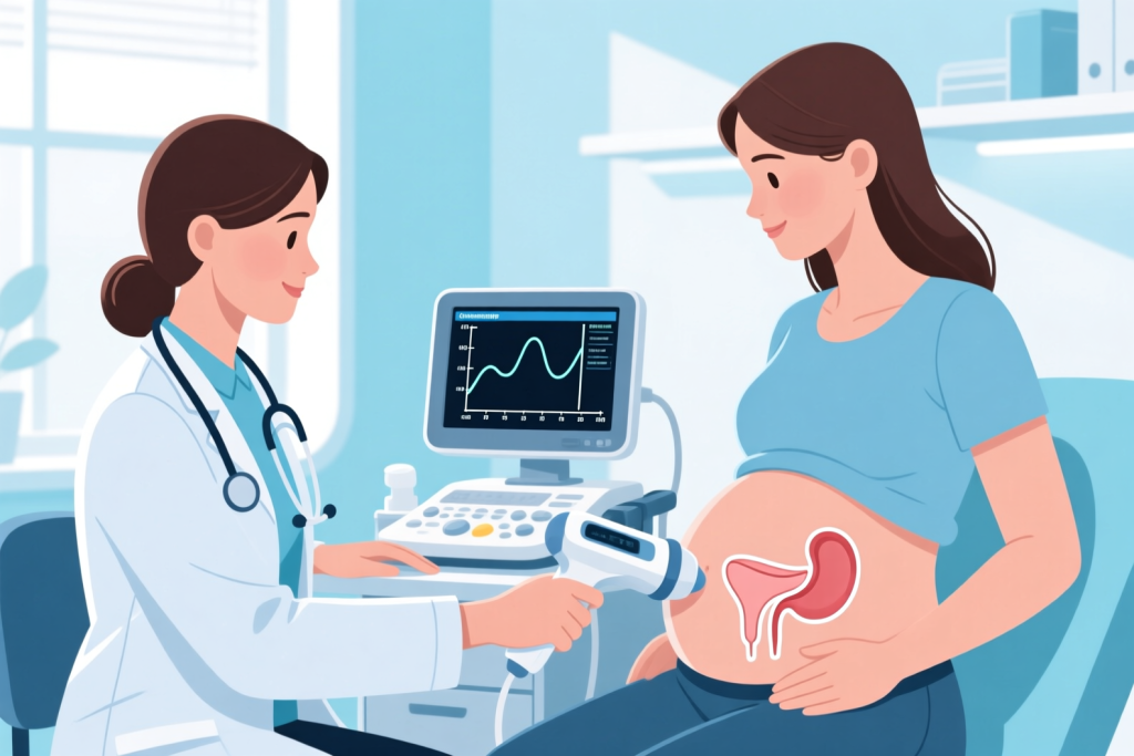 سونوگرافی مثانه: بررسی میزان ادرار باقیمانده پس از تخلیه.