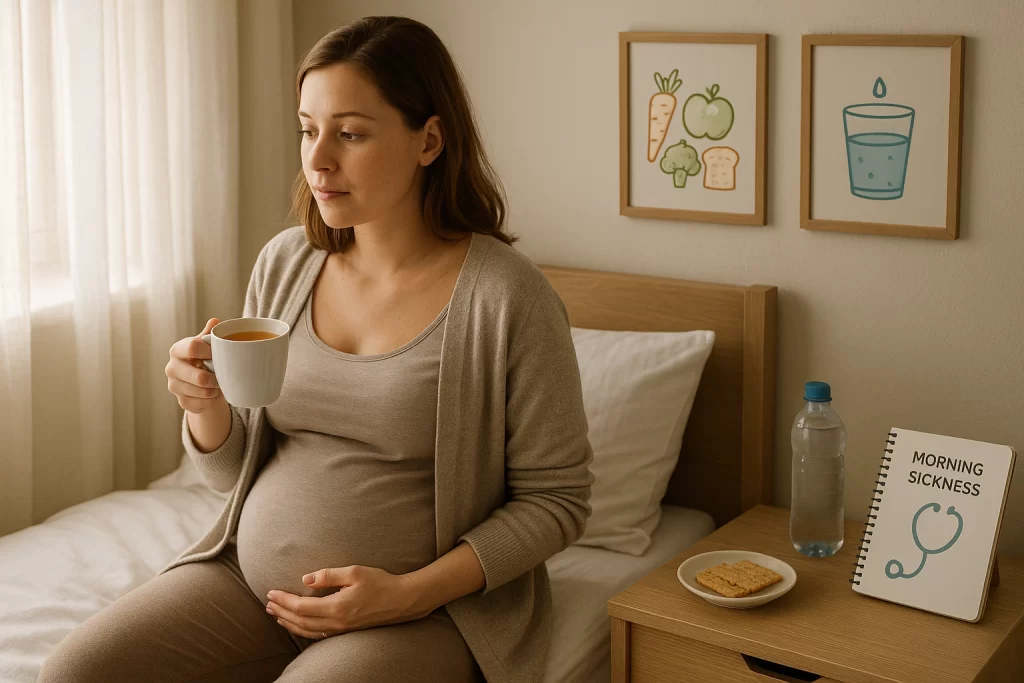 - زمانبندی وعدهها: سعی کنید حتی در صورت عدم احساس گرسنگی شدید، در فواصل زمانی منظم (مثلاً هر ۲ تا ۳ ساعت) چیزی میل کنید. داشتن چند بیسکویت خشک یا کراکر در کنار تختخواب و خوردن چند عدد از آنها قبل از برخاستن از رختخواب در صبح، میتواند به جلوگیری از بدترین حالت تهوع صبحگاهی کمک کند.
